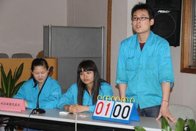 ??????? 四月的春風(fēng)情深意濃,四月的花海流彩飄香。為深入貫徹經(jīng)營(yíng)工作會(huì)議精神,引導(dǎo)廣大員工更好地了解公司發(fā)展戰(zhàn)略,進(jìn)一步轉(zhuǎn)觀念、解難題,抓調(diào)整、搞創(chuàng)新、促升級(jí),取得生產(chǎn)經(jīng)營(yíng)和企業(yè)管理的新勝利。公司于4月26日在103#3樓大會(huì)議室舉辦學(xué)習(xí)兩級(jí)經(jīng)營(yíng)工作會(huì)議精神知識(shí)競(jìng)賽。 ??????? 本次知識(shí)競(jìng)賽,共四支參賽代表隊(duì),分別是透鏡事業(yè)部代表隊(duì)、棱鏡事業(yè)部代表隊(duì)、模具事業(yè)部代表隊(duì)、機(jī)關(guān)代表隊(duì)。從題庫(kù)下發(fā)到正式比賽僅僅一周的時(shí)間,他們利用下班時(shí)間認(rèn)真準(zhǔn)備,將一道道題目熟記于心。比賽現(xiàn)場(chǎng),他們鎮(zhèn)定自若,經(jīng)過(guò)個(gè)人必答題,答案較長(zhǎng)的風(fēng)險(xiǎn)題,以及緊張的搶答題環(huán)節(jié),棱鏡事業(yè)部代表隊(duì)以180分的好成績(jī)?nèi)〉酶?jìng)賽特等獎(jiǎng),透鏡事業(yè)部代表隊(duì)、模具事業(yè)部代表隊(duì)榮獲一等獎(jiǎng),機(jī)關(guān)代表隊(duì)榮獲二等獎(jiǎng)。其中,透鏡事業(yè)部代表隊(duì)邱繼波、棱鏡事業(yè)部代表隊(duì)趙芳以出色表現(xiàn)取得整場(chǎng)比賽的個(gè)人風(fēng)采獎(jiǎng)。 ??????? 以下為各參賽隊(duì)現(xiàn)場(chǎng)剪影: |