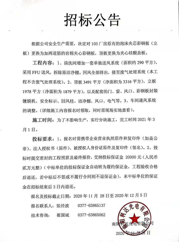 103廠房彩鋼板招標(biāo)公告