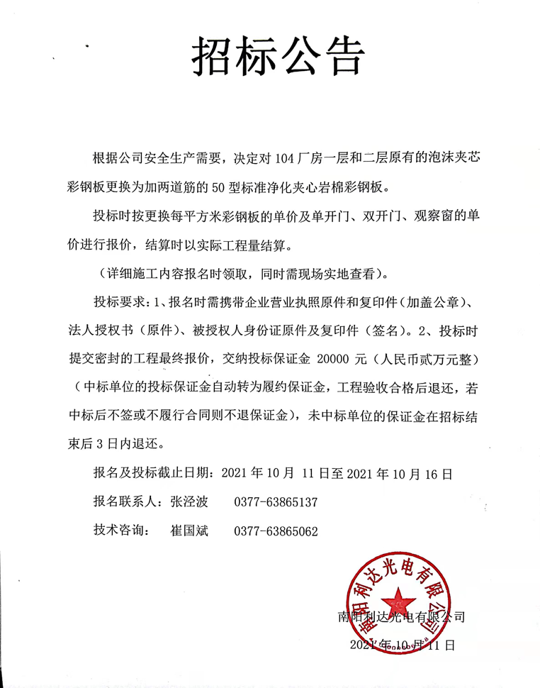 - (2022-09-29)光電新區(qū)三期廠房一層裝修施工的招標公告