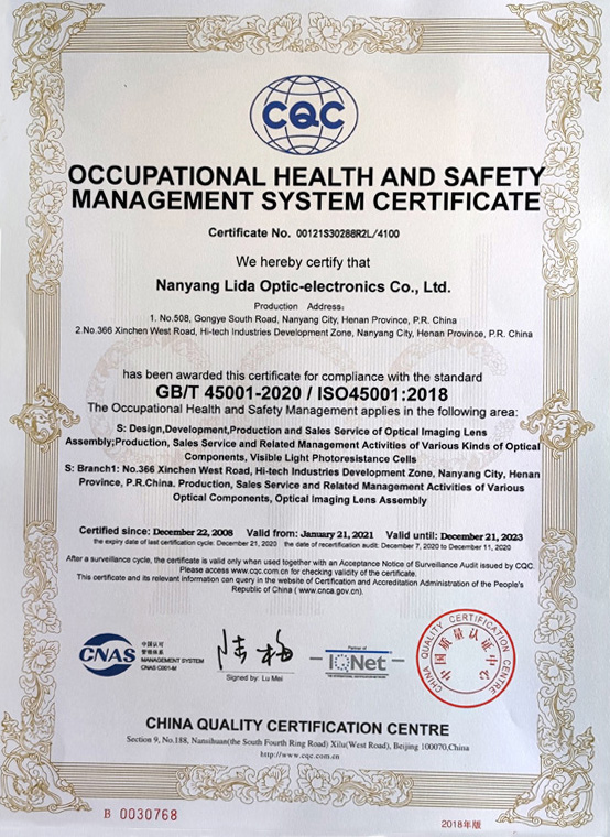職業(yè)健康安全管理體系認(rèn)證證書(英文)